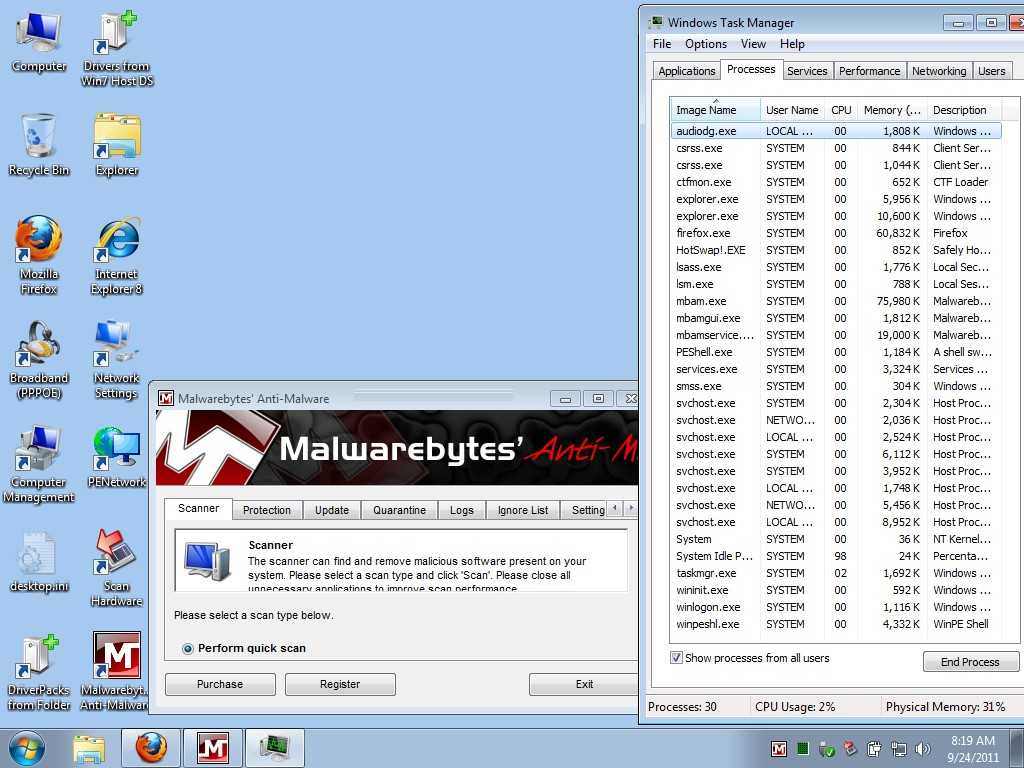 № 6. Рабочий стол одной из сборок Windows 7 Live