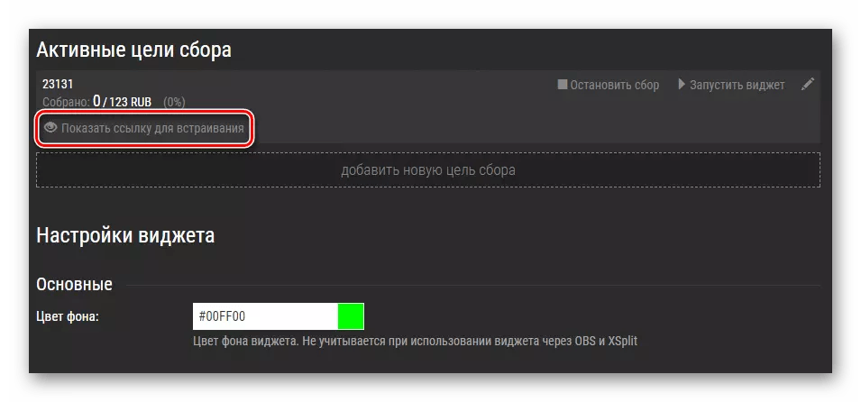 При создании виджета выдается уникальная ссылка, которую надо вставить в новый источник “Браузер” OBS студии.