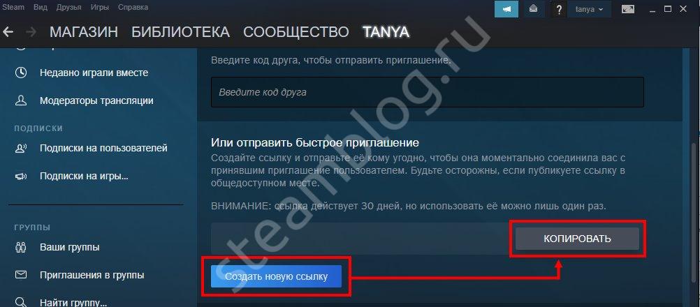 - Создайте и отправьте ссылку приглашения для друга Steam, если вы все еще не можете их найти или добавить.