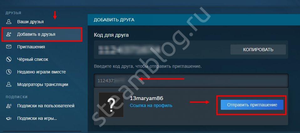 Добавление друга в Стиме