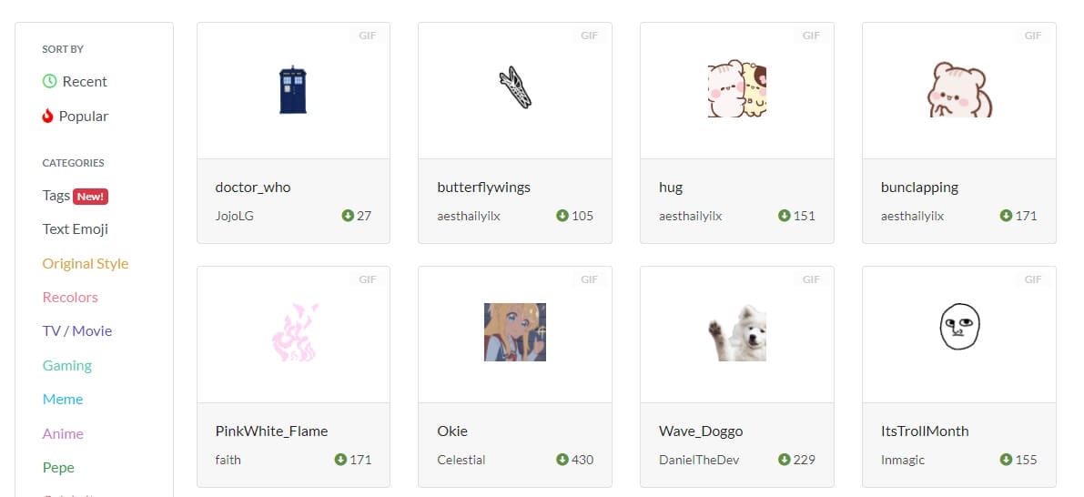 Это еще один отличный веб-сайт, который позволит вам загружать анимированные смайлы Discord.