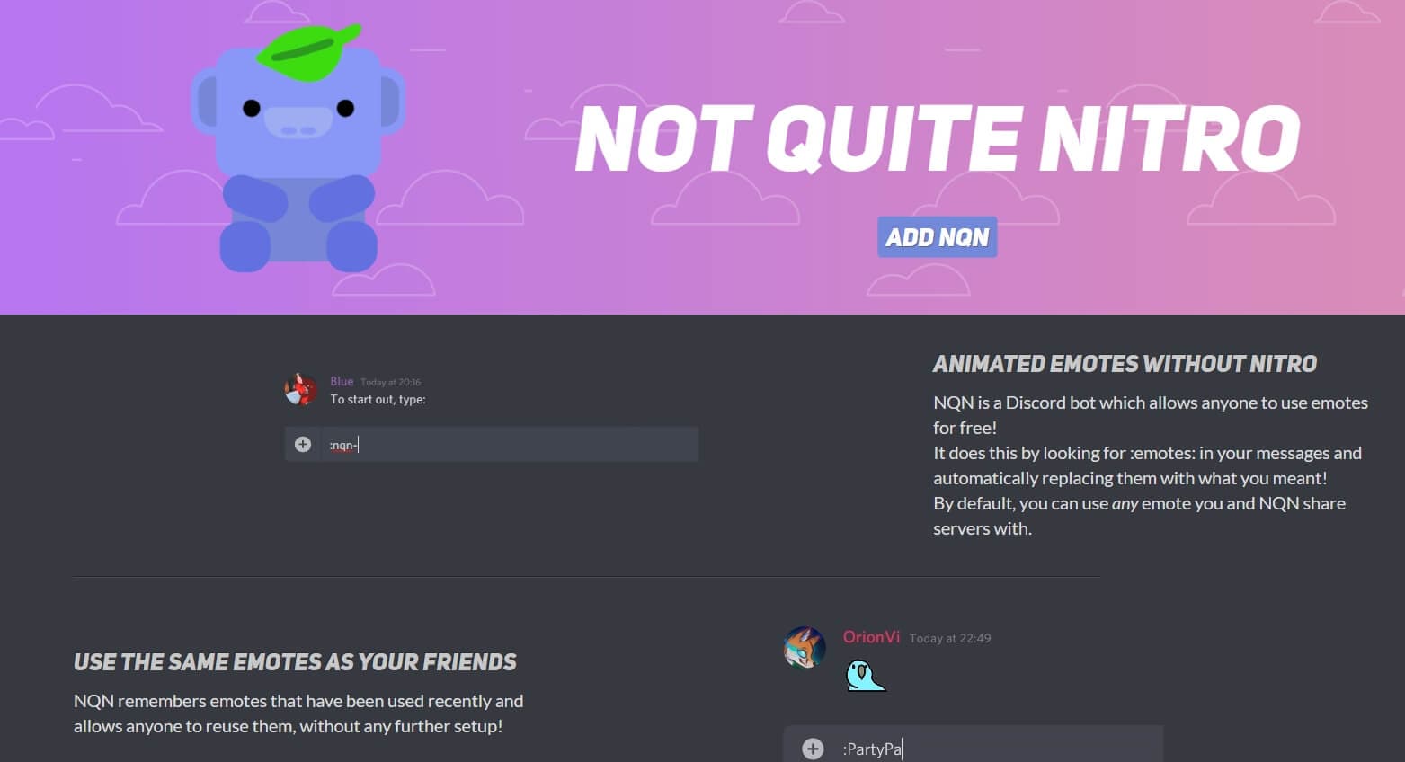 NQN — это бот Discord, который позволяет любому бесплатно использовать анимированные смайлы.