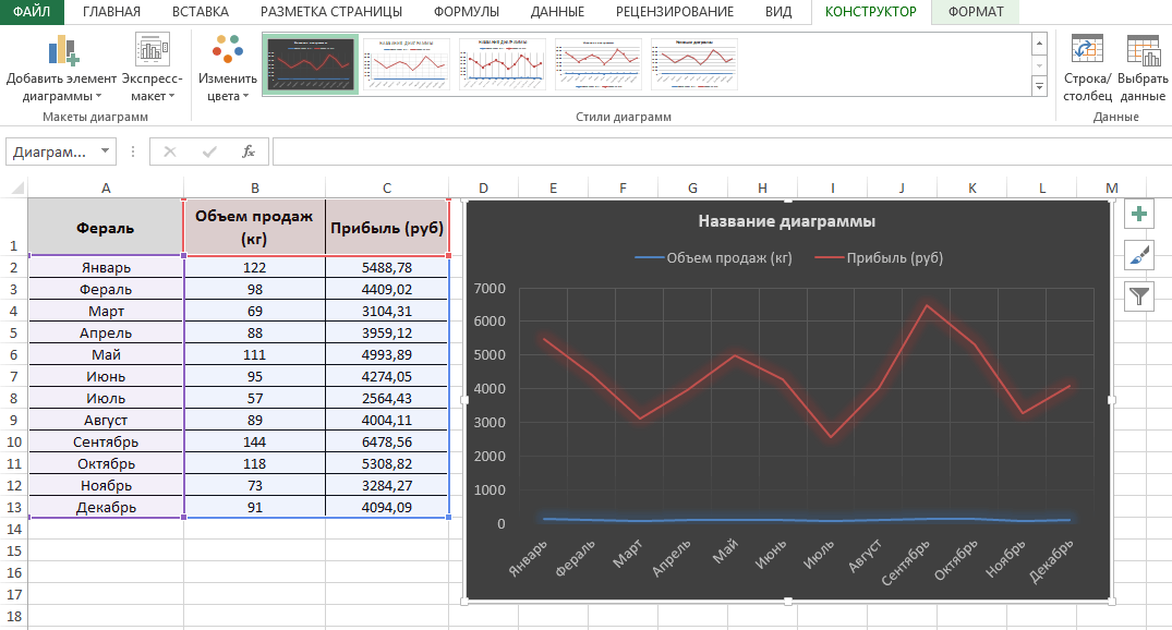 Чтобы улучшить внешний вид и упростить восприятие данных, график можно отредактировать как целиком, так и изменить его отдельные элементы.