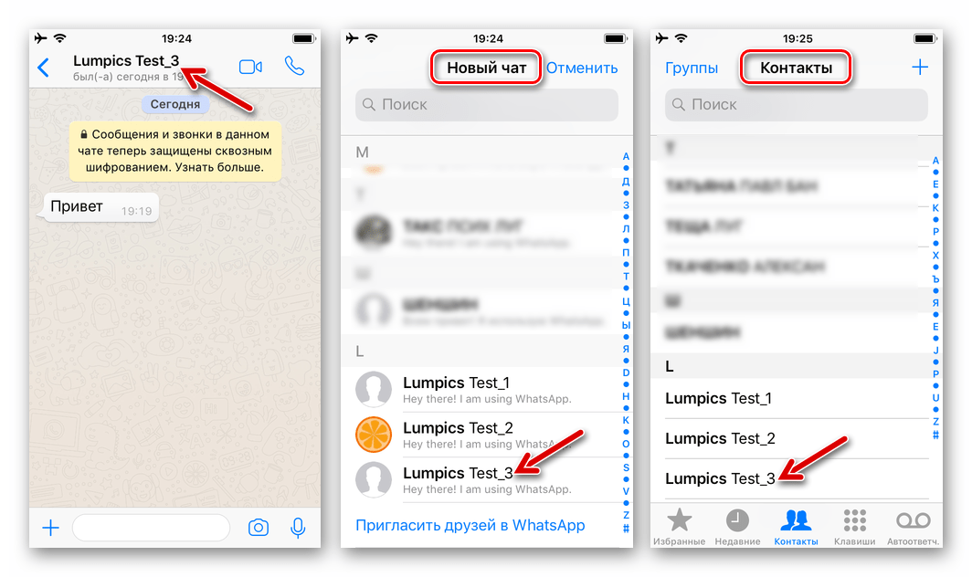 В случае если внесенный в результате выполнения вышеописанных шагов номер используется в качестве идентификатора участника сервиса ВатсАп, собеседник станет доступным и отображаемым в перечне контактов мессенджера.