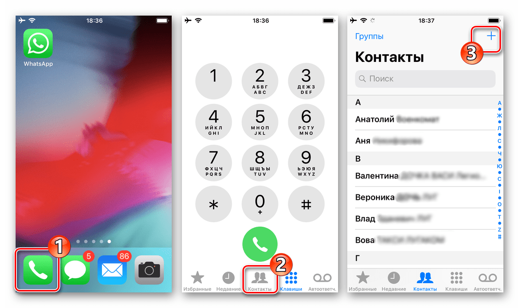 Чтобы добавить номер человека в контакты, функционирующего в среде iOS мессенджера ВатсАп, можно применить один из нескольких простых методов.