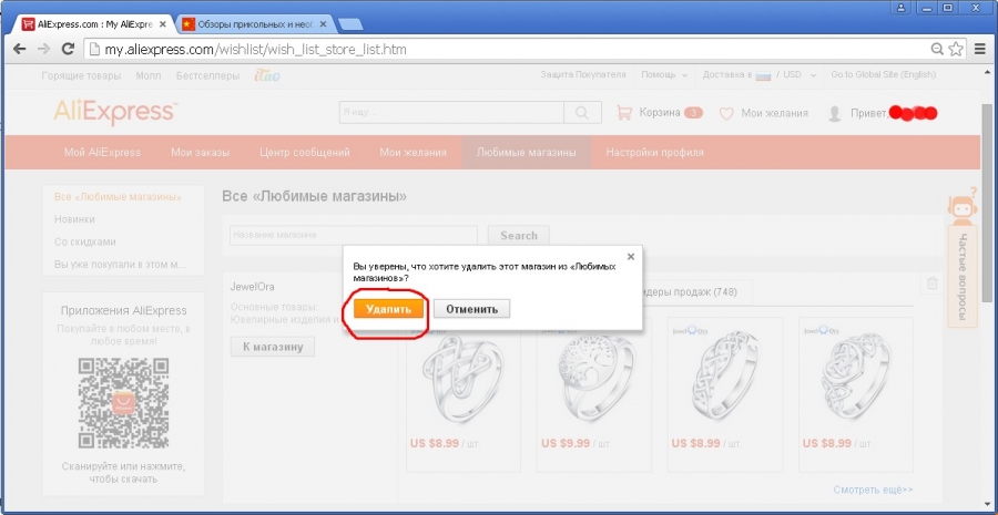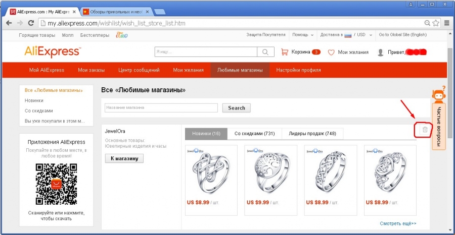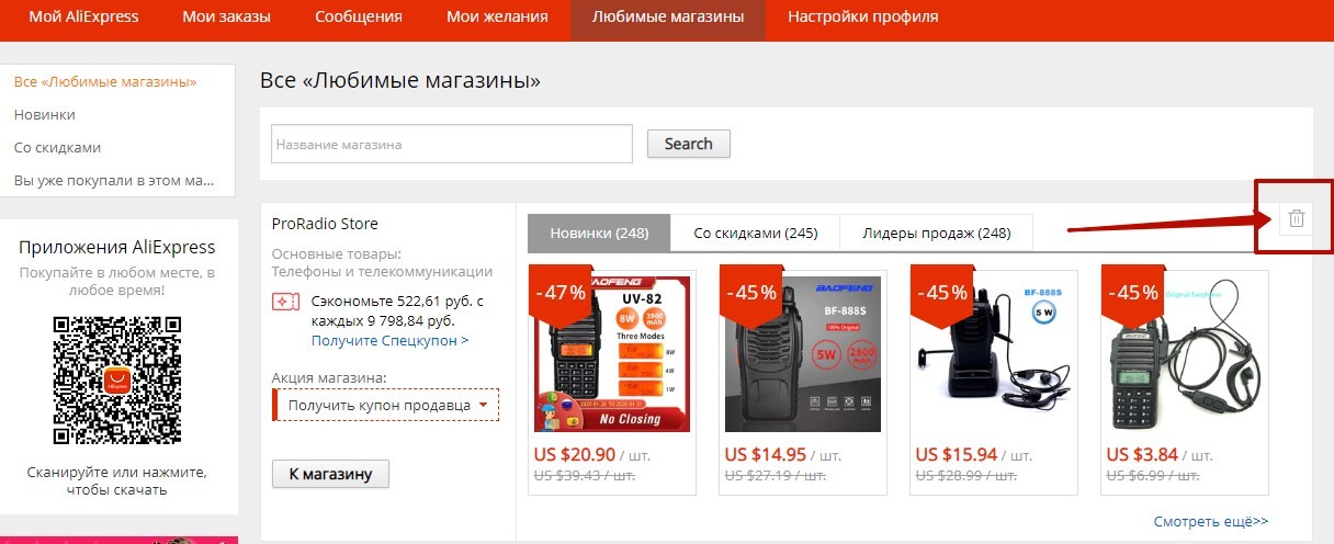 Как добавить или удалить магазин из любимых на Алиэкспресс?