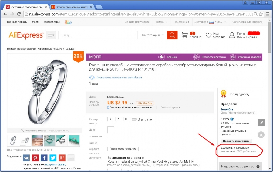 Как добавить магазин в любимые на Алиэкспресс через сайт