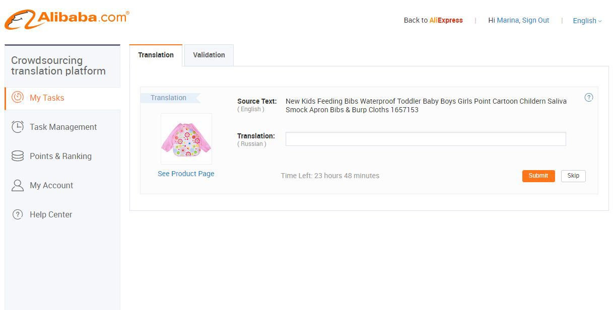 Совсем недавно Али начал бороться со смешными переводами, которые уже не один год нас веселят. Теперь мы все чаще встречаем более очеловеченные названия товаров на русском языке. Это происходит благодаря этой функции. Нажав сюда, вы попадете в другой раздел, где сможете помочь Али с переводом продукции. За помощь в переводе вы получите купоны. Сейчас мне неизвестно какие именно доступны для лидирующих участников этого проекта.
