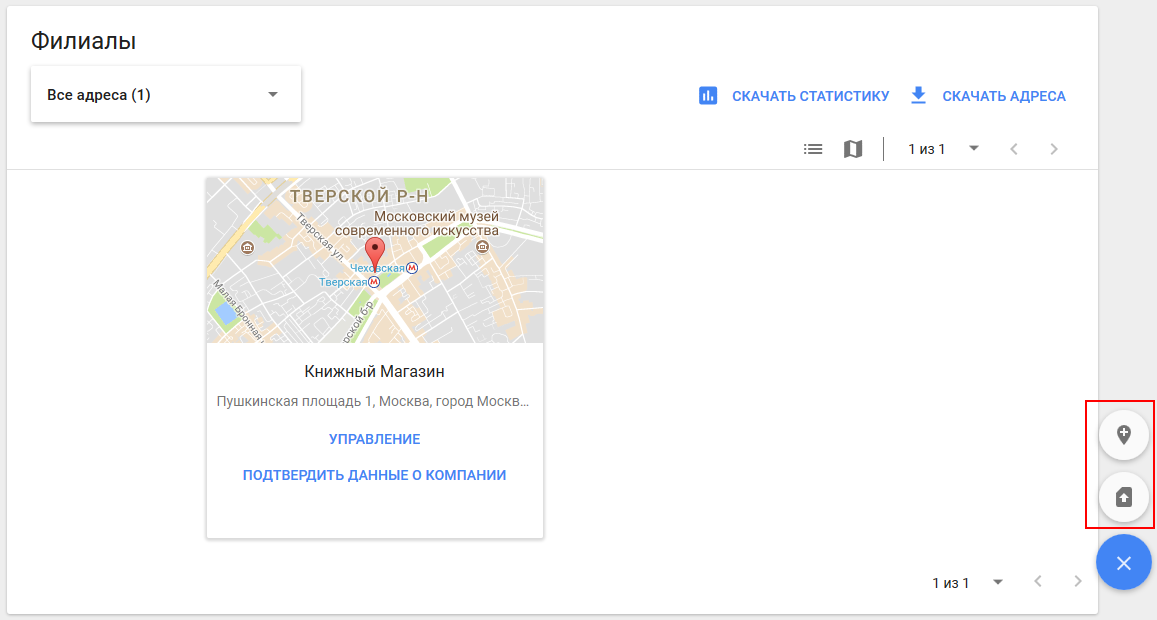 Если у вашей компании несколько отделений, их адреса нужно указать в Google Мой Бизнес. После входа на страницу откройте вкладку Мой Бизнес. В разделе Филиалы вы можете добавить новый адрес с помощью кнопки +.