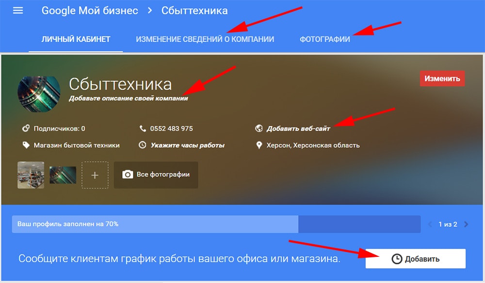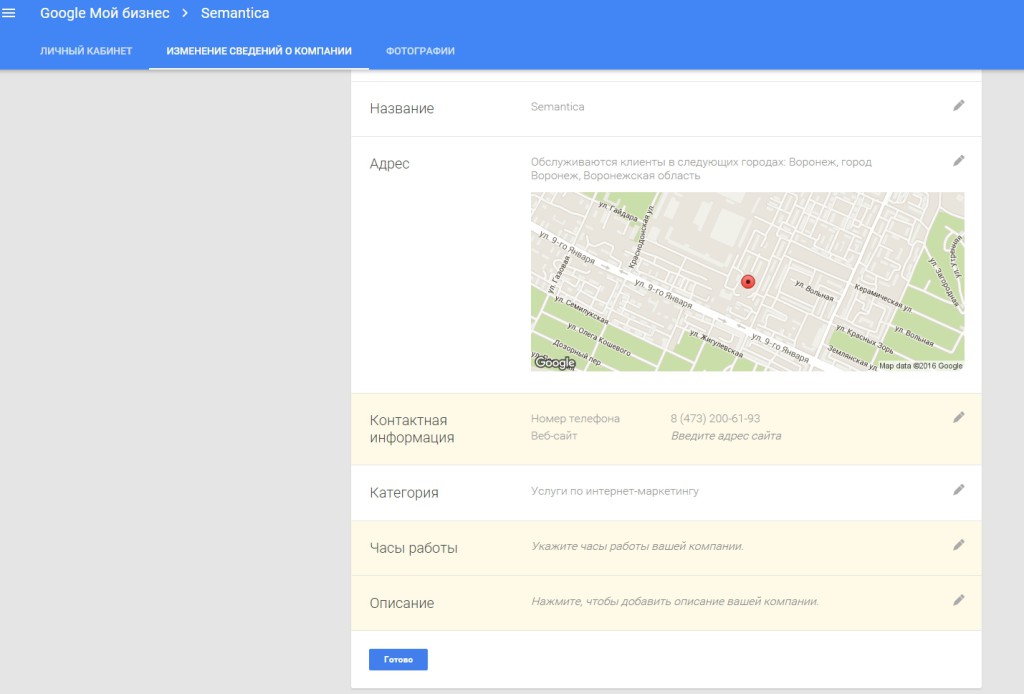 Из одного кабинета вы будете управлять всей информацией о компании, которая доступна поисковой системе и ее пользователям.