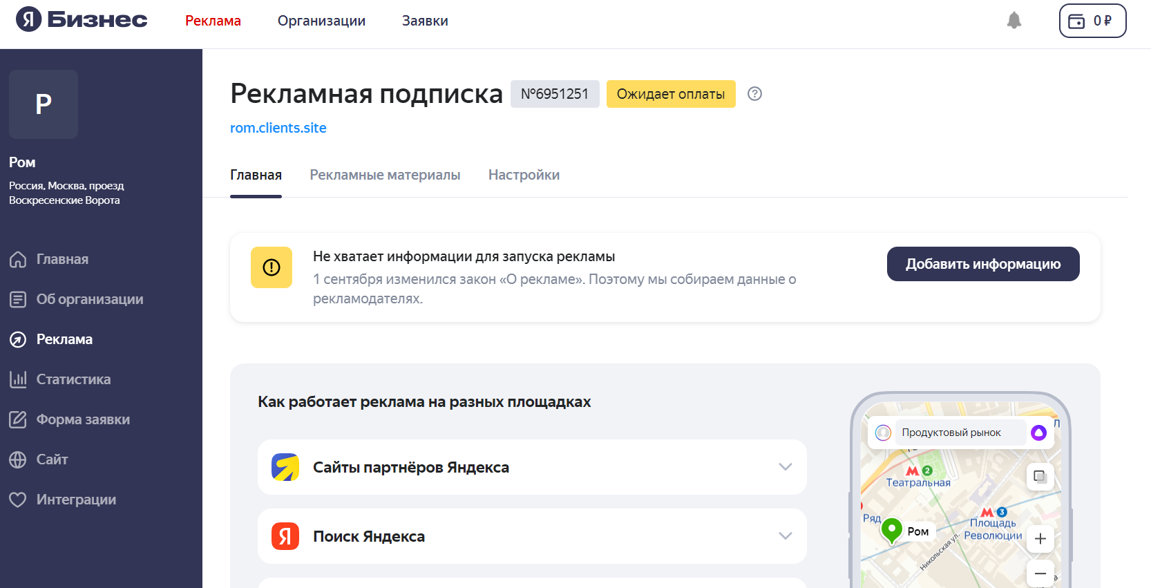 Благодаря приоритетному размещению ваша организация будет показываться на первых местах на странице с результатами поиска во всех версиях Карт: на десктопе, в мобильной версии и в мобильном приложении. Стоимость размещения зависит от региона, сферы деятельности и срока покупки рекламы. Как правило, приоритетное размещение на Яндекс Картах покупается сроком на 3, 6 или 12 месяцев. Чем дольше срок приобретения, тем больше скидку предлагает Яндекс.