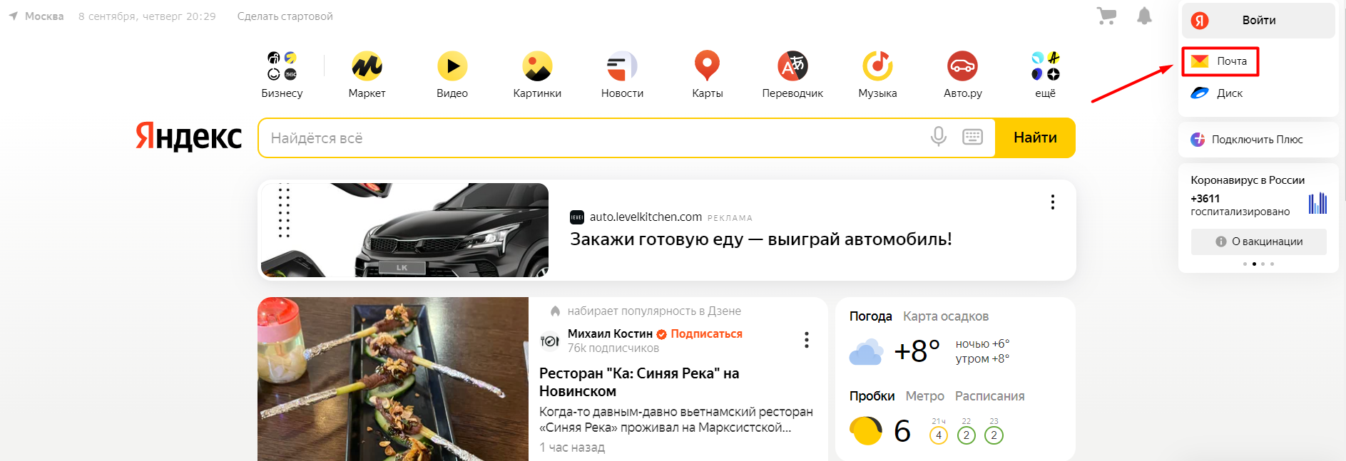 Чтобы добавить организацию в Яндекс Карты, для начала нужно зарегистрировать почту Яндекс, если ее нет («Яндекс ID»). Это можно сделать на главной странице Яндекса в разделе «Почта».
