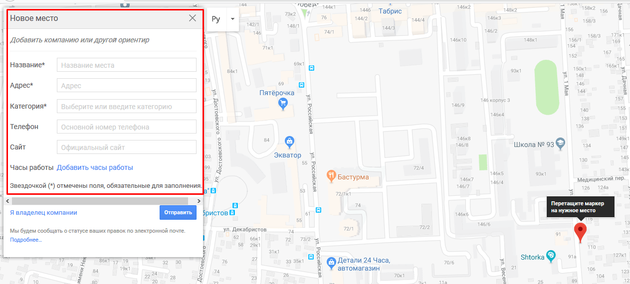 Теперь рассмотрим, как добавить организацию на Гугл Карты. Алгоритм такой: