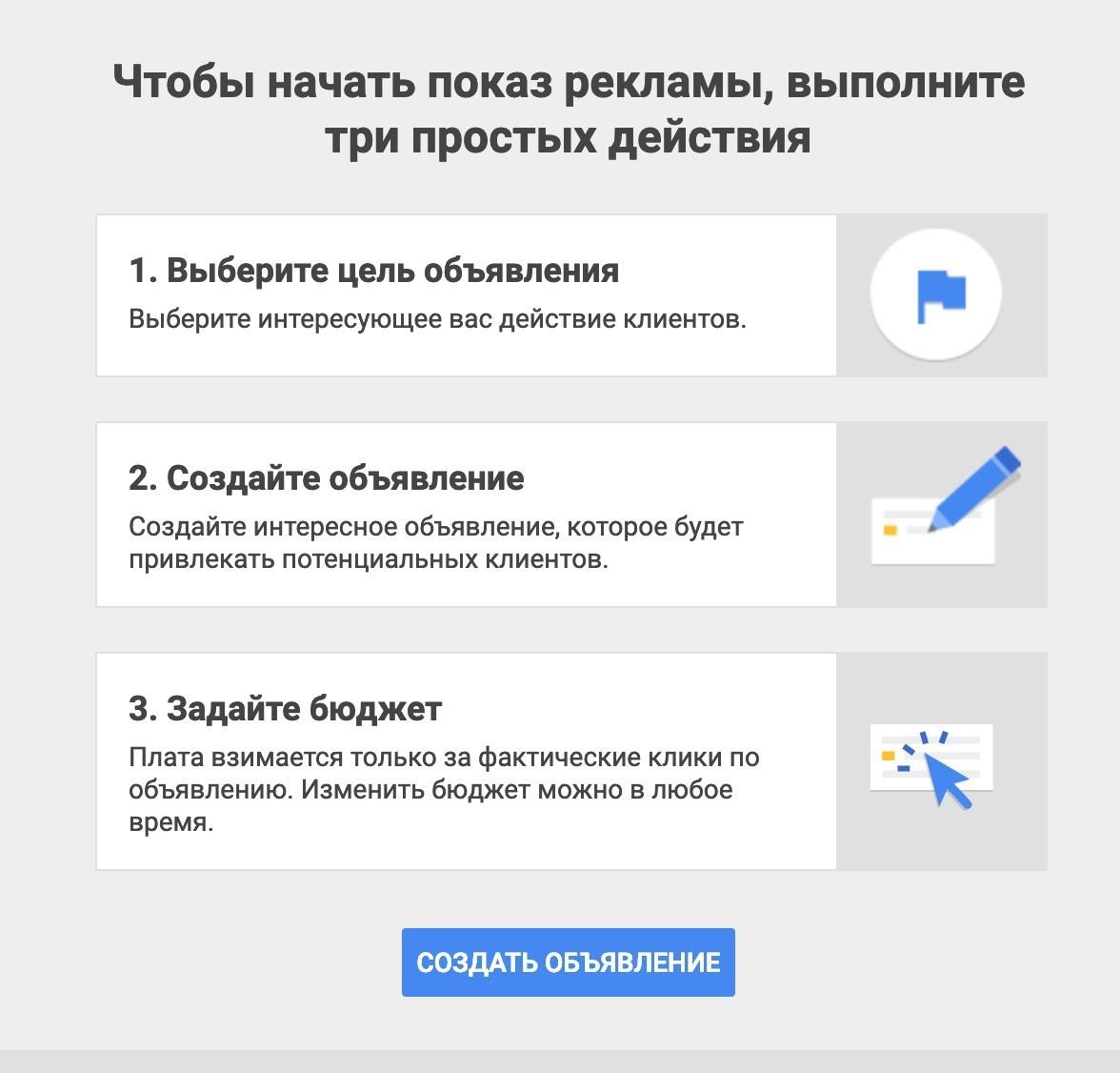 Обязательно должен быть аккаунт в электронной почте Gmail. Если у компании нет сайта, можно настроить профиль в «Google Мой бизнес» – и тогда контекстная реклама будет вести на него. Сервис позволяет легко контролировать действия со смартфона. Новая кампания в «Google Мой бизнес» дает денежные бонусы на контекстную рекламу.