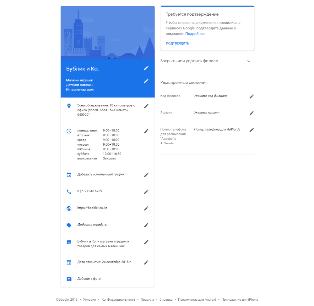 Добавить организацию в Google Maps — только половина пути, ведь данные необходимо подтвердить. Для этого: