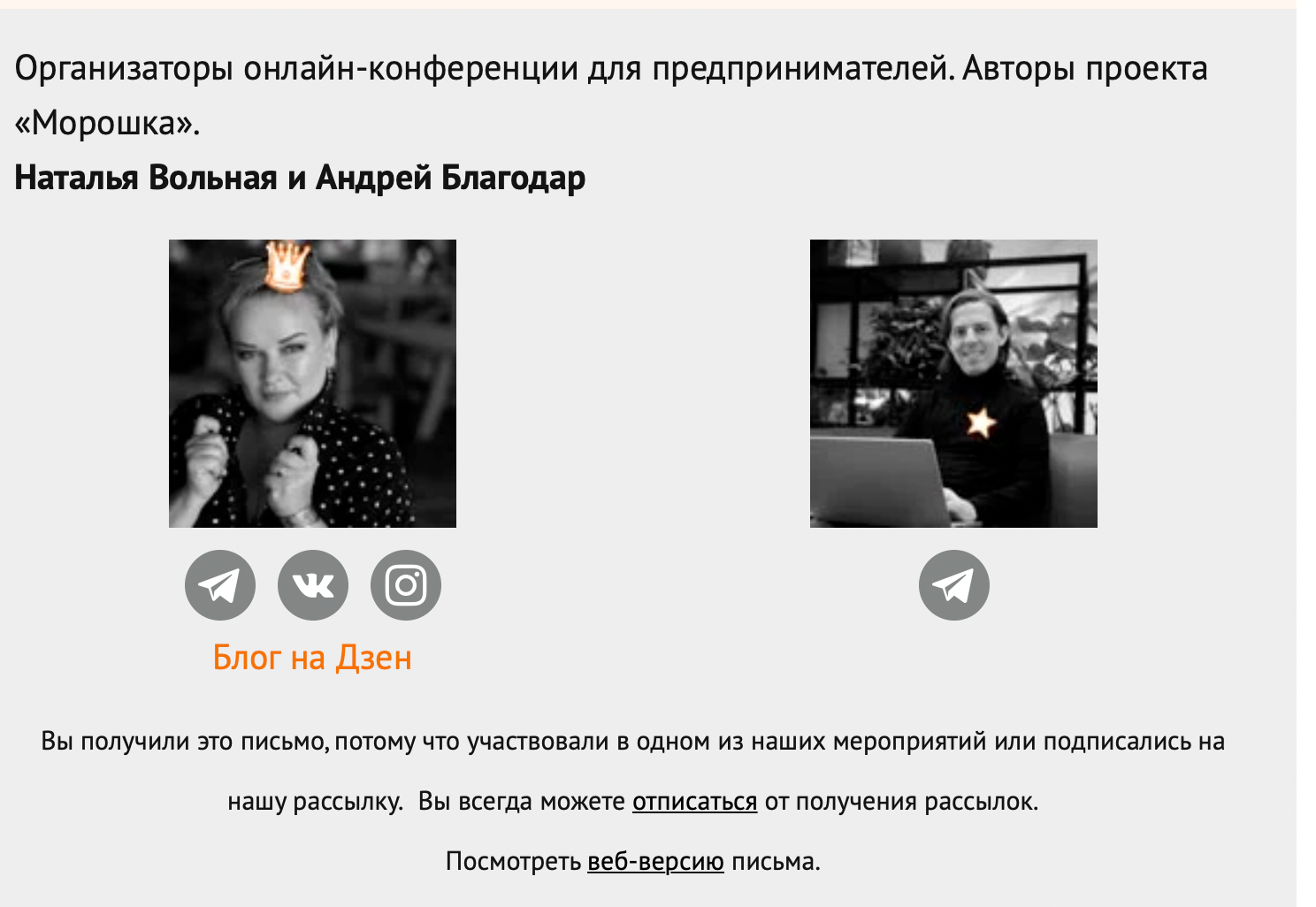- объяснение, почему клиент получил это письмо (подписался сам).