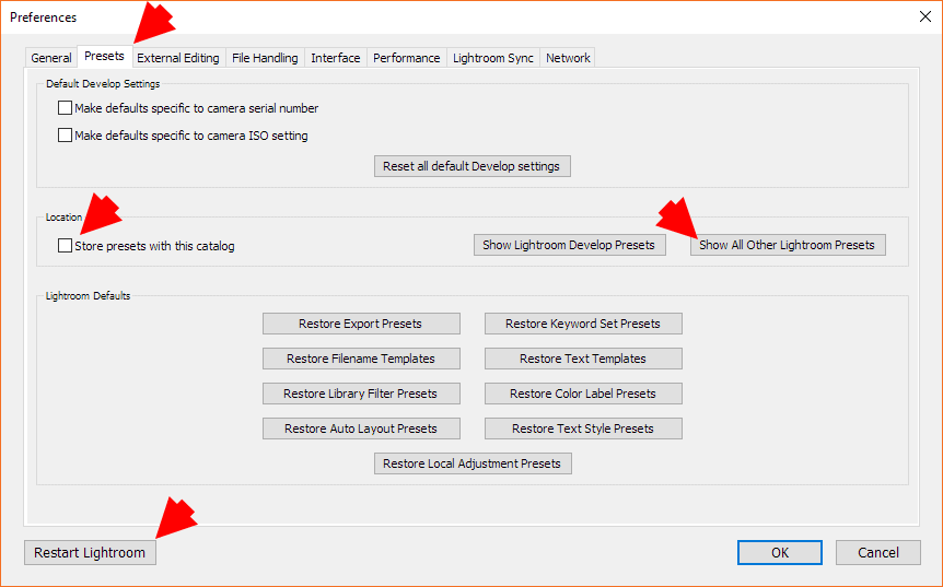 5. Click on the button titled, Show All Other Lightroom Presets.