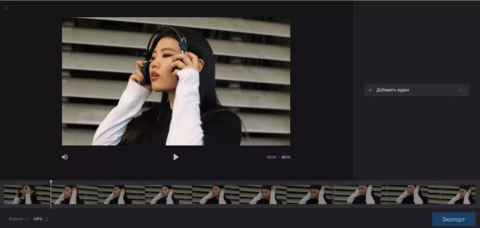 3. После обработки файл откроется в видеоредакторе. В правой колонке нажмите «Добавить аудио» и загрузите аудиофайл с компьютера.