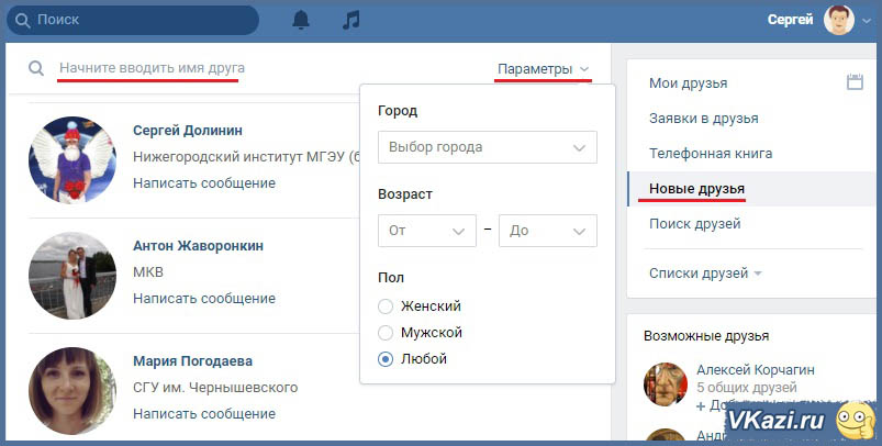 Рис.1. Ищем и добавляем в друзья ВКонтакте