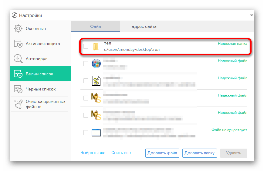 Все, теперь выбранная вами папка или файл не будут проверяться антивирусом.