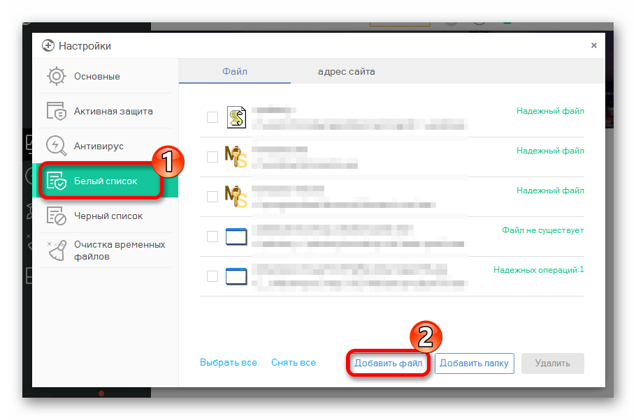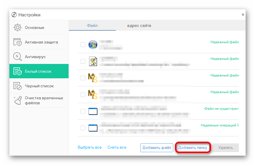 Подробнее: Добавляем элементы в список исключений Avira