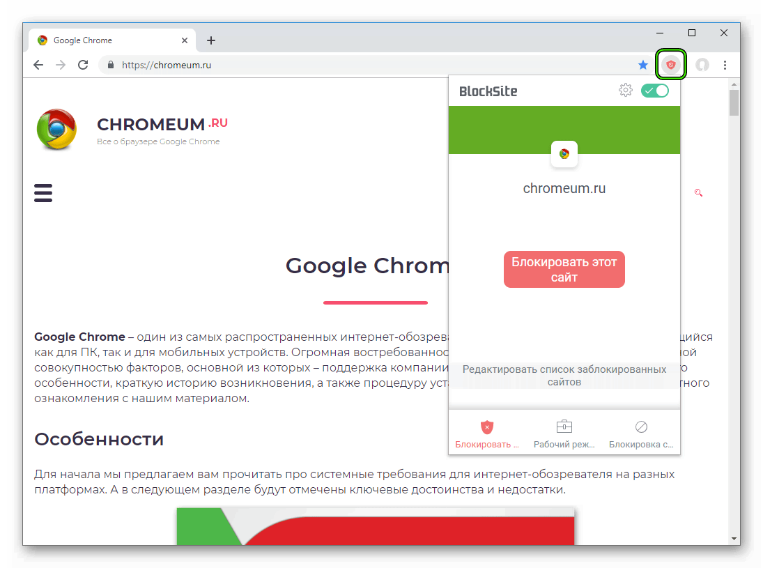 Поэтому прибегнем к помощи расширений от сторонних разработчиков. После изучения контента в официальном магазине стрелочка выбора остановилась на дополнении Block Site. Не будем вас томить, приступаем к рассмотрению нашего «любимчика».