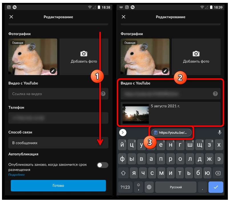 Ни официальный мобильный клиент Avito, ни приложение YouTube для устройств на платформе iOS и Android, никак не ограничивают возможность загрузки и следующей интеграции видео в рамках объявлений. Основным различием в этом случае выступает интерфейс обеих программ, тогда как облеченные веб-версии раздельно рассматриваться не будут.