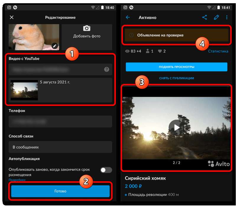 Ни официальный мобильный клиент Avito, ни приложение YouTube для устройств на платформе iOS и Android, никак не ограничивают возможность загрузки и последующей интеграции видео в рамках объявлений. Главным отличием в данном случае выступает интерфейс обеих программ, тогда как облеченные веб-версии отдельно рассматриваться не будут.