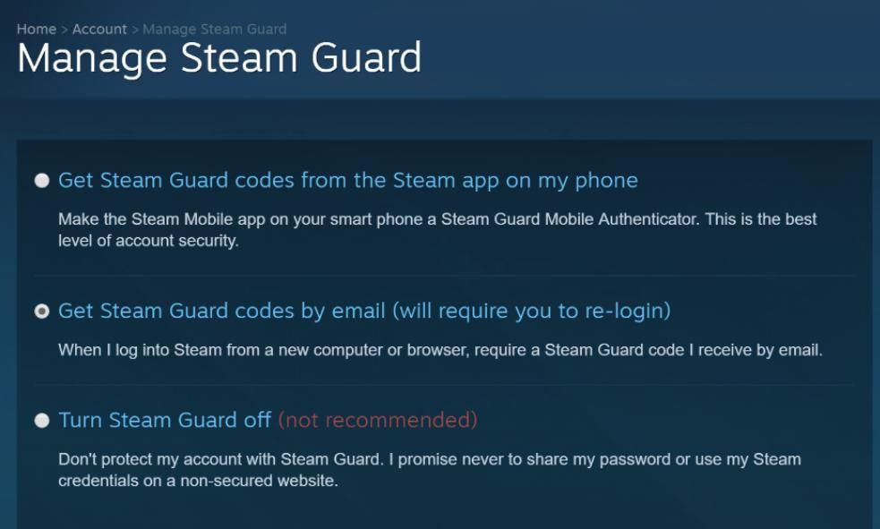 4) Обязательно выберите Получите коды Steam Guard из приложения Steam на моем телефоне или же Получите коды Steam Guard по электронной почте , или оба.