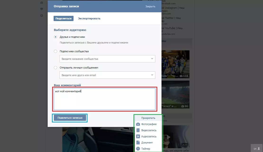 Как Вконтакте добавить запись на стену друга