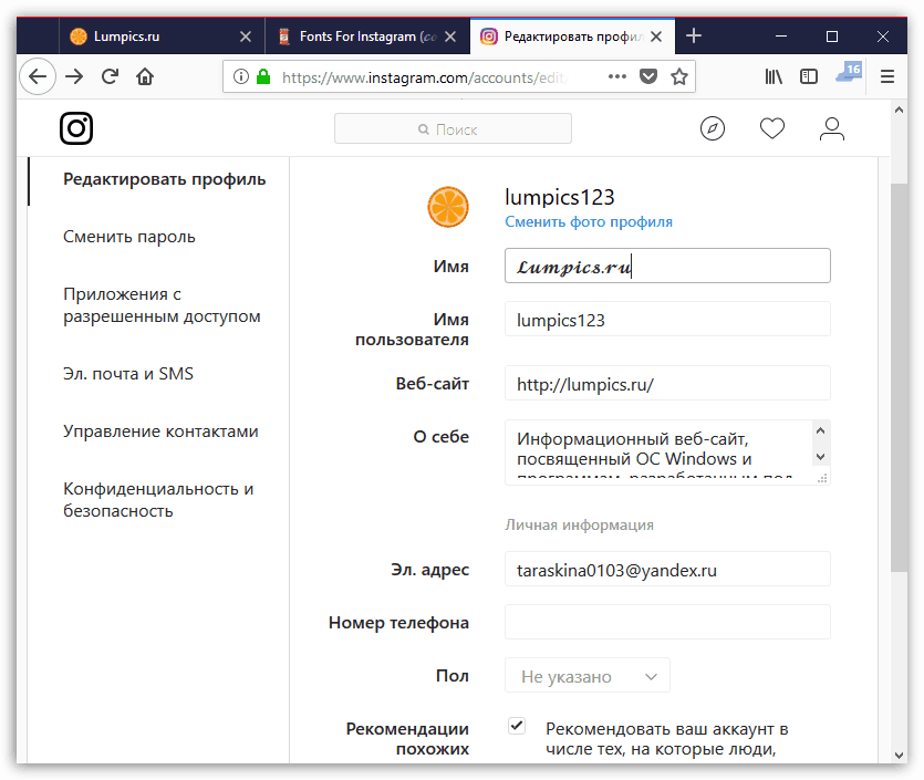 ะะฐะบ ะธะทะผะตะฝะธัั ััะธัั ะฒ ะฑะธะพะณัะฐัะธะธ Instagram