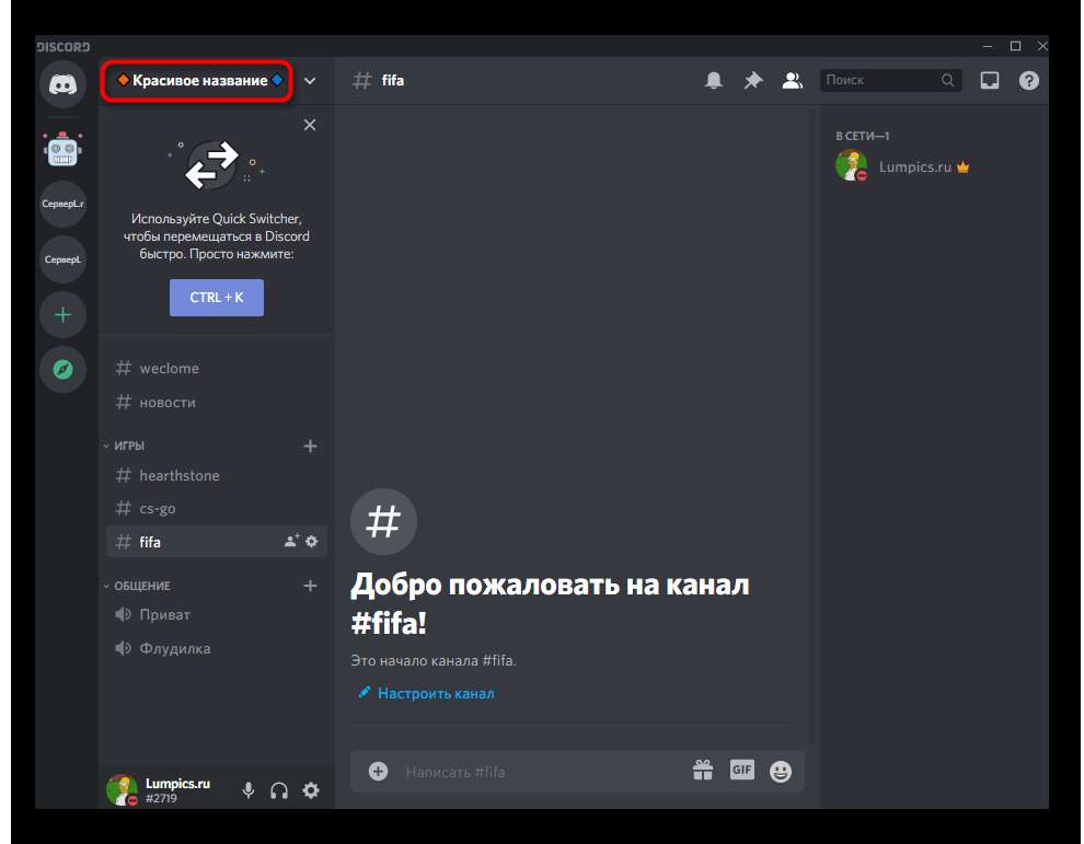Очередной принципиальный атрибут — прекрасное заглавие для сервера. Этот нюанс субъективен, так как нередко наименование пишут обыкновенными знаками, не добавляя особых символов либо украшений. Но мы желаем показать, что можно сделать с этой настройкой и как использовать эмодзи, когда охото добавить их в данную строчку.
