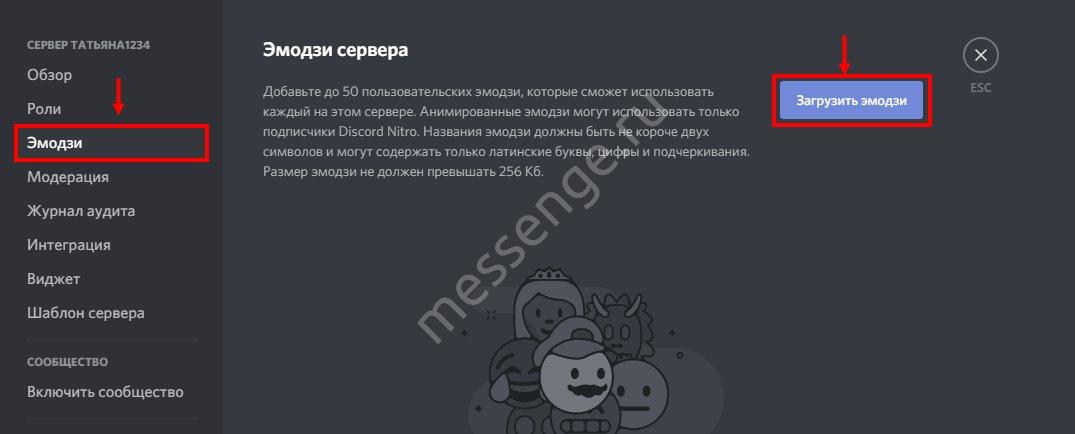 Создавая канал или сервер, не забывайте улучшать его, добавляя смайлы — это что-то вроде смайлов. Зайдите в соответствующий пункт меню и нажмите «Скачать смайлы».