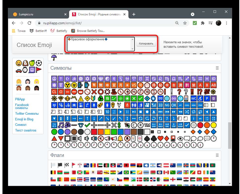 - По необходимости добавьте эмодзи или специальные знаки точно так же, как об этом уже было рассказано выше.