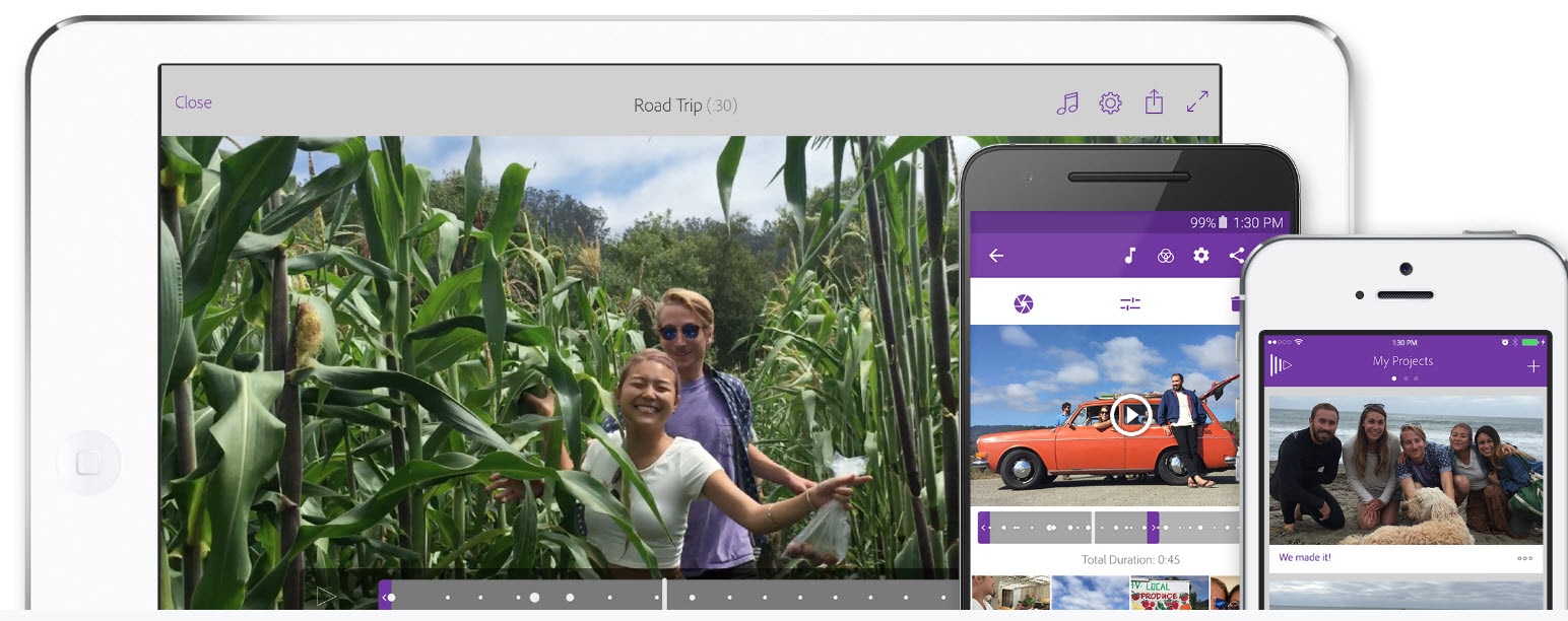Упрощенный вариант Adobe Premiere создан для использования на планшетах, смартфонах. Сервис работает бесплатно и позволяет корректировать звук, выполнять кадрирование, масштабирование, обрезку изображений, вставлять стикеры, титры.