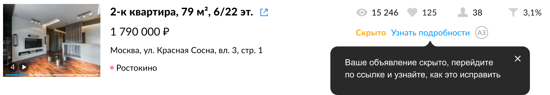 Авито говорит, что из-за подозрительных данных скрывает объявления только в категории «Недвижимость», но это не так. На VC и Пикабу можно найти множество постов людей, у которых скрыли объявление из другой категории, потому что заметили в нем подозрительные данные.