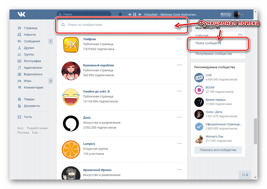 Способ 2: стандартный поиск сообществ ВКонтакте