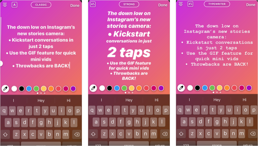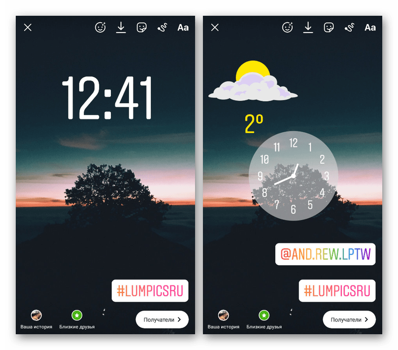 Можно выбрать цвет или фон шрифта, как это делается при обычной публикации Instagram Stories. Предусмотрена возможность добавления любого инструмента или стикера. Для этого нужно просто нажать соответствующую иконку.