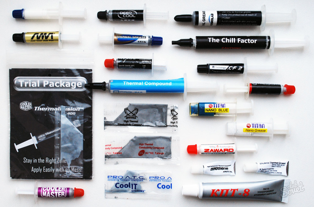 Известны они любому пользователю, который хотя бы один раз пытался самостоятельно почистить компьютер. КПТ-8 и Алсил, стоят в районе 100 рублей, имеют силиконовую основу и оксид цинка в составе. Отечественная термопаста для процессора стоит недорого, но и имеет низкие показатели термопроводимости.