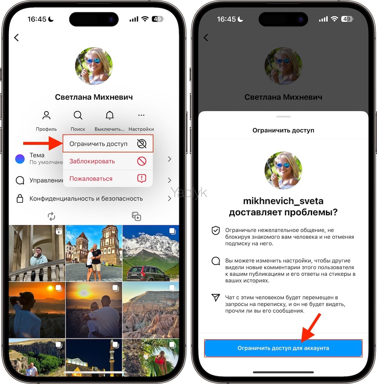 Когда вы ограничиваете учетную запись Instagram, то любое новое сообщение от этой учетной записи попадает в папку запросов сообщений, а не в обычную ветку чата. Таким образом можно будет избежать получения ненужных уведомлений.