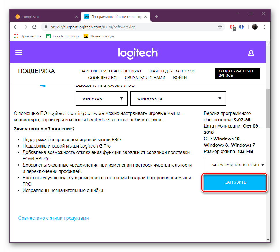 - Откройте официальную страницу производителя устройства в интернете и отыщите там необходимый софт.