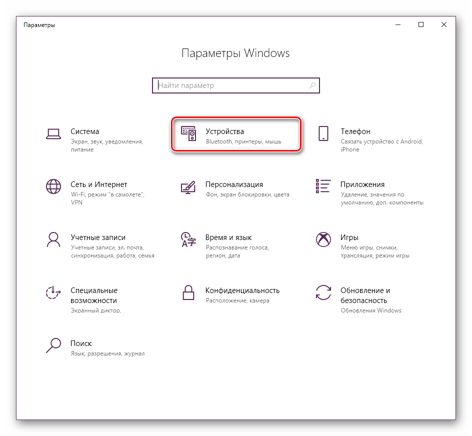 - Откройте «Параметры» и перейдите в раздел «Устройства».
