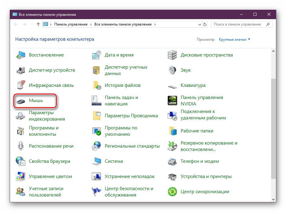 Чтобы начать настройку мыши, откройте Панель управления -> Все элементы панели управления -> Мышь.