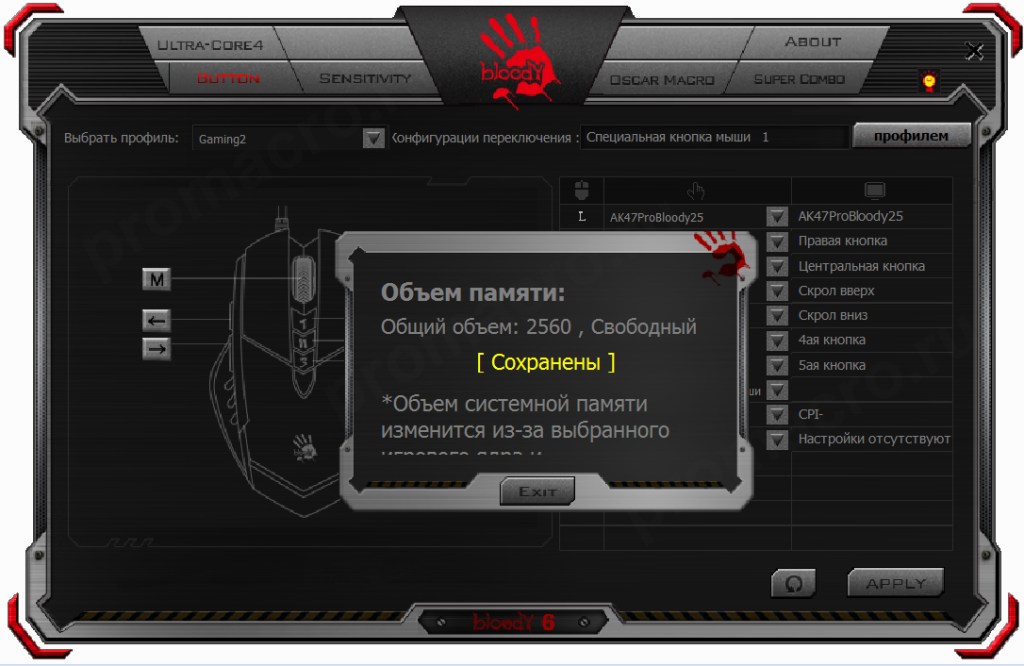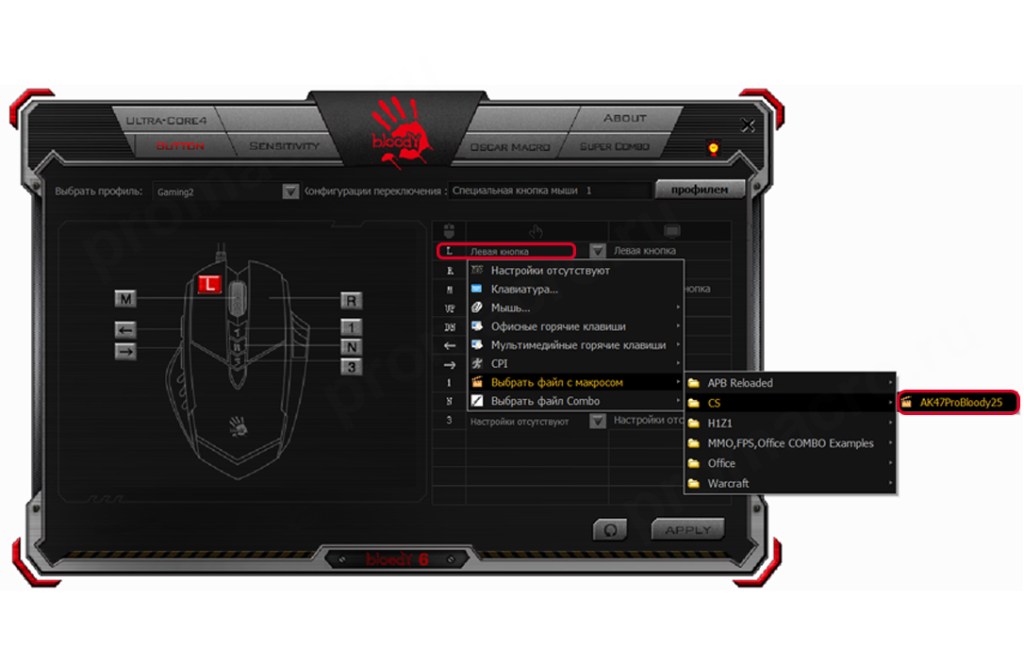 После этого нажмите APPLY, макрос будет загружен в мышь.
