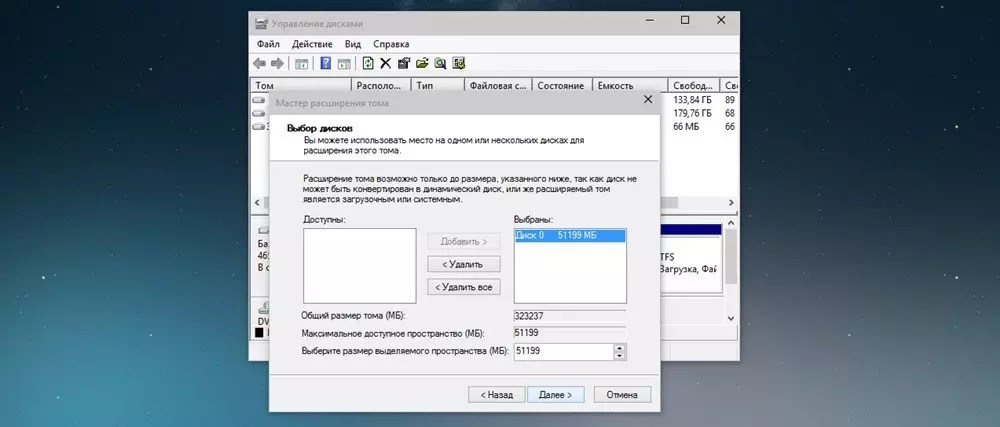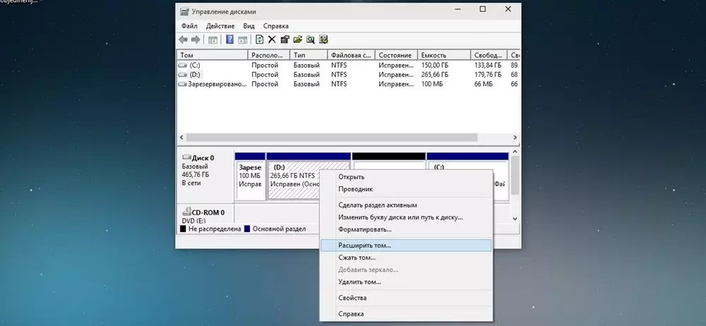 Не забудьте присоединить его к нужному разделу. Нажмите на секцию, в которую будут объединены все объекты и в контекстном меню кликните на «Расширить том».