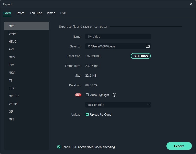 Чтобы добавить клип в очередь экспорта, перейдите к Файл> Экспорт> Медиа или используйте сочетание клавиш Cmd / Ctrl + M.