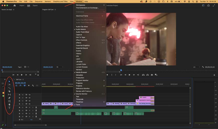 Never worry about losing your Premiere Pro tools, you can always get them back in the Windows menu.