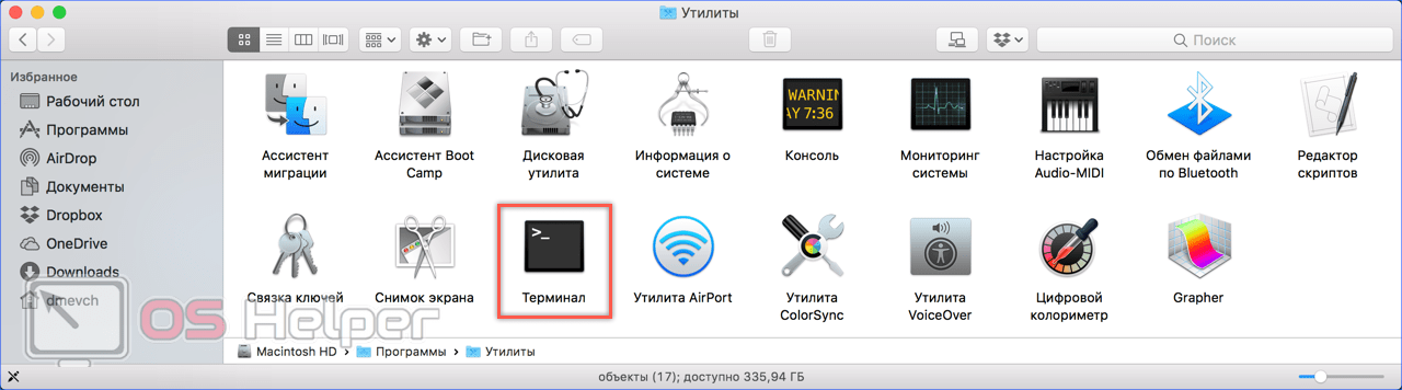 - Открываем папку «Утилиты» и запускаем отмеченную на скриншоте программу.