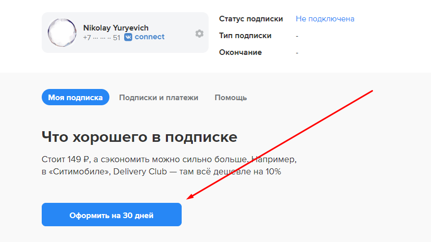 - Кликните на ссылку «Оформить на 30 дней» .