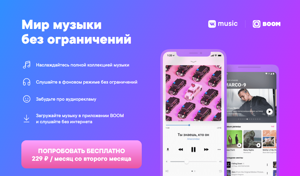 - Снятие дневного ограничения на музыку в 30 минут. Вы сможете слушать любимые треки 24 часа в сутки. Имеется возможность прослушивать аудиозаписи в режиме офлайн, используя приложение BOOM.